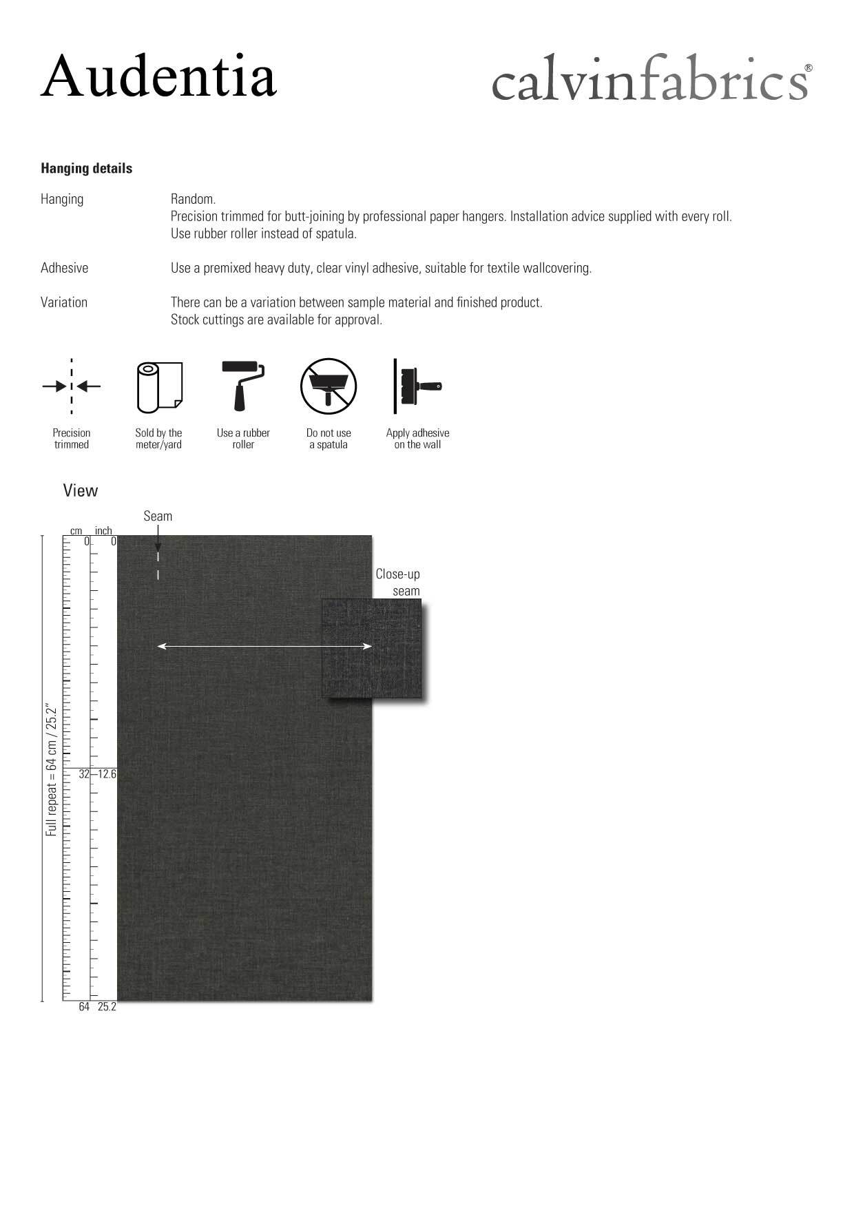 Surface finish: A stain repellent finish prevents waterbased splashes penetrating and staining the material. Periodic vacuuming is recommended to prevent dust from building up on the materials surface.