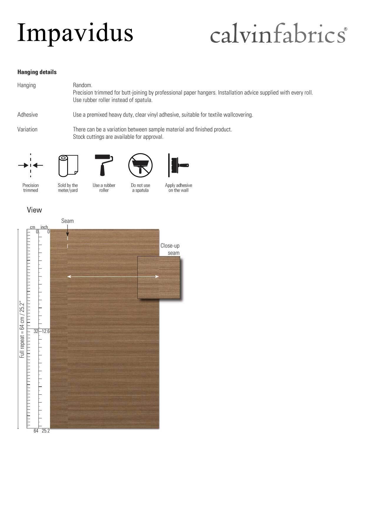 Surface finish: A stain repellent finish prevents waterbased splashes penetrating and staining the material. Periodic vacuuming is recommended to prevent dust from building up on the materials surface.