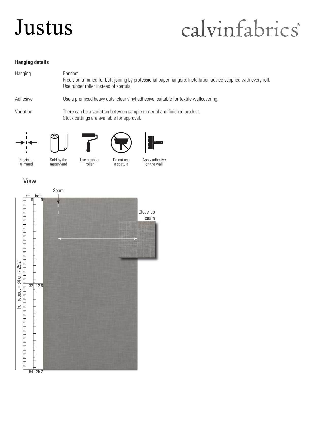 Surface finish: A stain repellent finish prevents waterbased splashes penetrating and staining the material. Periodic vacuuming is recommended to prevent dust from building up on the materials surface.